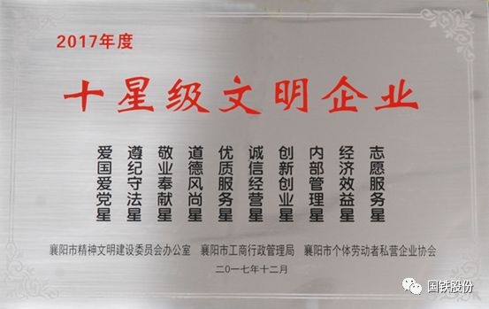 襄陽國鐵榮獲2017年度“十星級文明企業(yè)”