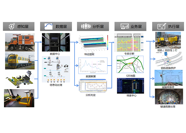 源自不同的智能檢測(cè)裝備的數(shù)據(jù)經(jīng)過數(shù)據(jù)中心整理、歸并、解算,生成過程性分析數(shù)據(jù)和直觀的判斷結(jié)果,最終對(duì)線路狀況提供運(yùn)營(yíng)維保的建議和意見。